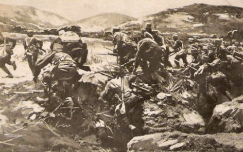 Στις 12 Αυγούστου το Α και Γ Σώμα Στρατού άρχισε, μετά τις επιτυχημένες επιχειρήσεις των προηγουμένων ημερών, την επίθεσή του. Το Α σώμα από το κέντρο επιτέθηκε στα οχυρά Ταμπούρογλου, αφού πέρασε τον ποταμό Κατρατζί, και το Γ, στο αριστερό άκρο στα οχυρά του Ιλιντζά. Οι μάχες ήταν άγριες, σχεδόν σώμα με σώμα. Η προέλαση δύσκολη και βραδεία, παρότι παντού οι ελληνικές δυνάμεις νικούσαν και απωθούσαν τους αμυνόμενους. Οι έλληνες αξιωματικοί πολεμούσαν επικεφαλής των στρατιωτών, ενώ ακόμη και οι νοσοκόμοι πολεμούσαν σώμα με σώμα. Ήταν μια συνεχής, τρομερή πάλη, που κράτησε σχεδόν 20 μέρες, μέχρι τα τέλη Αυγούστου, οπότε και είχε υπερφαλαγγισθεί η πρώτη αμυντική τουρκική γραμμή άμυνας και ο ελληνικός στρατός βρέθηκε ενώπιον της δεύτερης.