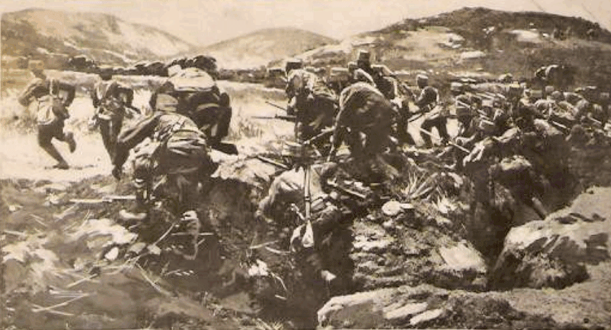 Στις 12 Αυγούστου το Α και Γ Σώμα Στρατού άρχισε, μετά τις επιτυχημένες επιχειρήσεις των προηγουμένων ημερών, την επίθεσή του. Το Α σώμα από το κέντρο επιτέθηκε στα οχυρά Ταμπούρογλου, αφού πέρασε τον ποταμό Κατρατζί, και το Γ, στο αριστερό άκρο στα οχυρά του Ιλιντζά. Οι μάχες ήταν άγριες, σχεδόν σώμα με σώμα. Η προέλαση δύσκολη και βραδεία, παρότι παντού οι ελληνικές δυνάμεις νικούσαν και απωθούσαν τους αμυνόμενους. Οι έλληνες αξιωματικοί πολεμούσαν επικεφαλής των στρατιωτών, ενώ ακόμη και οι νοσοκόμοι πολεμούσαν σώμα με σώμα. Ήταν μια συνεχής, τρομερή πάλη, που κράτησε σχεδόν 20 μέρες, μέχρι τα τέλη Αυγούστου, οπότε και είχε υπερφαλαγγισθεί η πρώτη αμυντική τουρκική γραμμή άμυνας και ο ελληνικός στρατός βρέθηκε ενώπιον της δεύτερης.