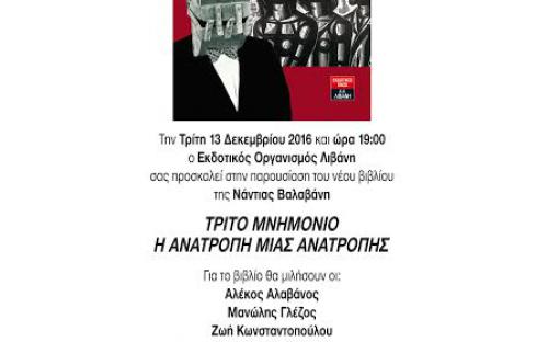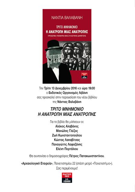 ΠΑΡΟΥΣΙΑΣΗ ΒΙΒΛΙΟΥ ΝΑΝΤΙΑΣ ΒΑΛΑΒΑΝΗ - ΤΡΙΤΟ ΜΝΗΜΟΝΙΟ Η ΑΝΑΤΡΟΠΗ ΜΙΑΣ ΑΝΑΤΡΟΠΗΣ