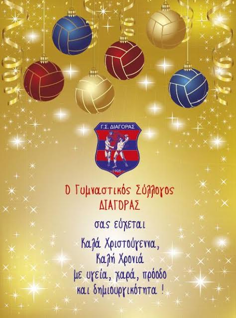 Το Tμήμα Βόλεϊ του Γ.Σ. Διαγόρας διοργανώνει χριστουγεννιάτικη γιορτή στο κλειστό Γυμναστήριο του Συλλόγου το Σάββατο 17 Δεκεμβρίου 2016 στις 14:30.