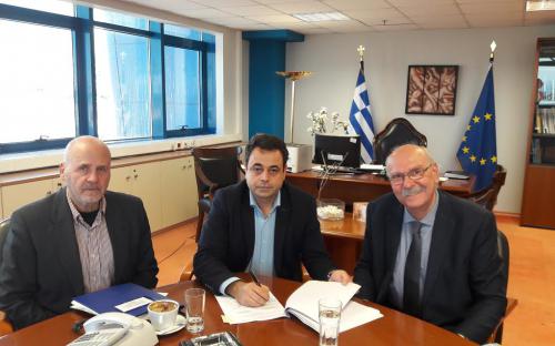 Ο Υφυπουργός Νησιωτικής Πολιτικής, Νεκτάριος Σαντορινιός, προχώρησε σήμερα στην υπογραφή της σύμβασης για τη λειτουργία και συντήρηση των υφιστάμενων μονάδων αφαλάτωσης και του ταχυδιυλιστηρίου των νησιών Πάτμου και Αρκιών, παρουσία του Γενικού Γραμματέα Αιγαίου, κ. Γιαννέλη και του Προέδρου της εταιρείας CULLIGAN, κ. Θεοδωρακόπουλου. Το έργο που υπεγράφη πρόκειται να λύσει το χρονίζον και μεγάλο πρόβλημα της υδροδότησης της Πάτμου και των Αρκιών, αφού προβλέπει την επεξεργασία θαλασσινού νερού και την παραγωγή πόσιμου, με την λειτουργία μονάδων αφαλάτωσης- που έμεναν ανενεργές για 3,5 χρόνια τώρα- και ταχυδιυλιστηρίου. Σημαντικό είναι να υπογραμμιστεί, ότι η σύμβαση προβλέπει την δέσμευση, από πλευράς εταιρείας, της συντήρησης των εγκαταστάσεων στα νησιά.