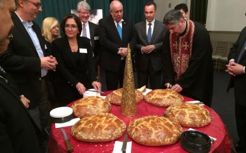 Στη συνέχεια, ο Τέρενς Κουίκ παρέστη στην κοπή της βασιλόπιτας των Ομογενειακών Οργανώσεων της Νέας Υόρκης.