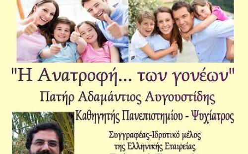 με θέμα: «Η Ανατροφή...των γονέων». Θα υπάρξει και διάλογος μέσω δικών σας ερωτήσεων.
