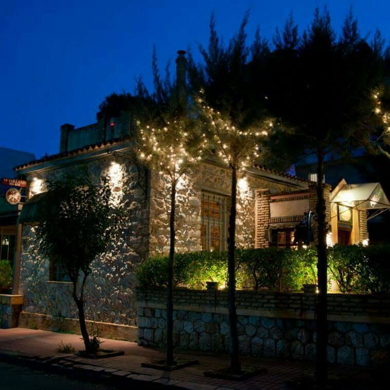 Κτίσμα του 1927, από αυτά που δεν ακουμπά ο χρόνος, αντίθετα, η σωστή συντήρηση, τους δίνει κύρος, μεγαλοπρέπεια και διαχρονική αξία. Μου θύμισε έντονα κτίριο της Μεσαιωνικής Ρόδου. Το εσωτερικό ντεκόρ, εφάμιλλο του συνόλου, με μοναστηριακά τραπέζια και τη φυσική πέτρα και το ξύλο να είναι οι μεγάλοι πρωταγωνιστές.