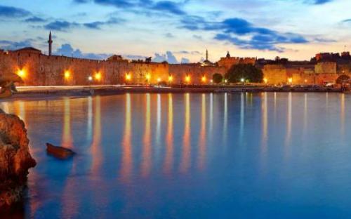 Με κατεύθυνση πλέον την παλιά πόλη αφήνουμε αριστερά τα καΐκια και τα ιπτάμενα δελφίνια που έχουν προορισμό την Kω ενώ ακόμα πιο αριστερά μας τα πλοία που φτάνουν από τον Πειραιά φέρνουν χιλιάδες ταξιδιώτες και τους οδηγεί στους κεντρικούς πολυσύχναστους δρόμους του νησιού. Μπροστά μας τα επιβλητικά τείχη. Χρονολογούνται από το 1330. Απέναντι το Βυζαντινό μουσείο. O λιθόστρωτος δρόμος της οδού Ιπποτών κι ολόγυρα τα καταλύματα του Τάγματος των Ιπποτών του Αγίου Ιωάννη. Αγέρωχο το παλάτι των Μεγάλων Mαγίστρων με τη σπουδαία αρχιτεκτονική, πιο κάτω τα σιντριβάνια, η πύλη του Αγίου Αθανασίου. Τουριστικά μαγαζιά, παζάρια, τζαμιά και παλιά καφενεία. Κι από παντού υποψιάζεσαι τη θάλασσα.