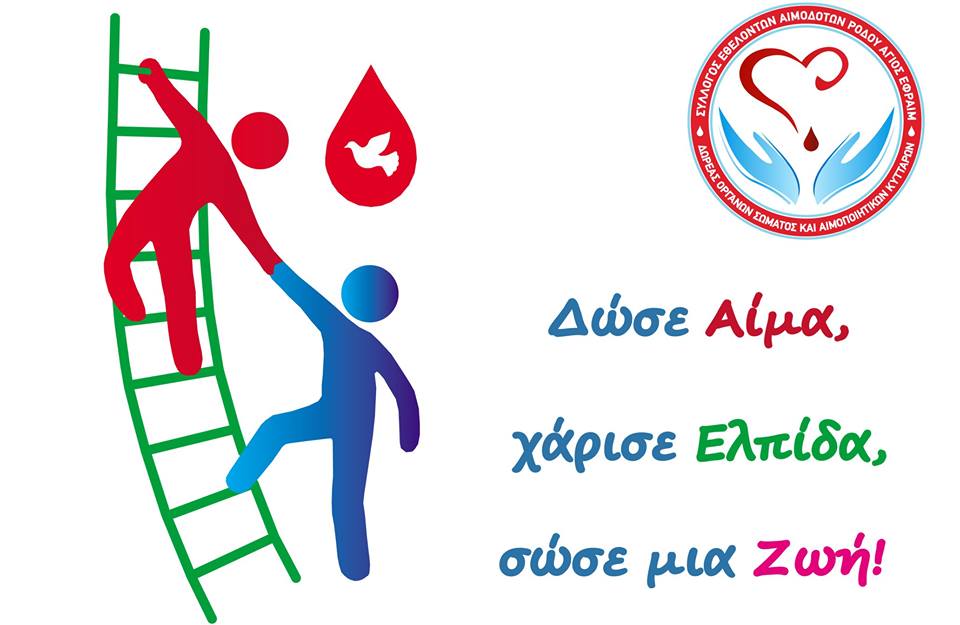 Ο Σύλλογος Εθελοντών Αιμοδοτών Ρόδου «Άγιος Εφραίμ» προσκαλεί τα μέλη – αιμοδότες του να προσέλθουν στις εκλογές για την ανάδειξη του νέου Διοικητικού Συμβουλίου, που θα πραγματοποιηθούν στο γραφείο του Συλλόγου (εντός του νοσοκομείου), την Κυριακή 26 Μαρτίου από τις 11:00 το πρωί έως τις 6:00 το απόγευμα.