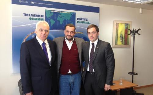 Οι κ.κ. Μπαλαμπάνοφ και Τροφιμένκο ενημέρωσαν τον Επικεφαλής της ΓΓΑΕ κ. Μιχάλη Κόκκινο για την δράση τους στο πανεπιστήμιο, το οποίο αποτελεί γέφυρα μεταξύ Ελλάδας και Ουκρανίας και υπογράμμισαν το τεράστιο ενδιαφέρον των φοιτητών για την εκμάθηση της Ελληνικής γλώσσας, της ιστορίας και του πολιτισμού.
