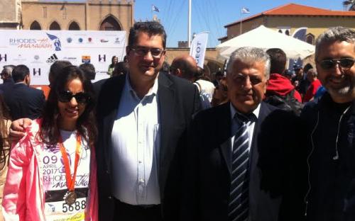παρακολούθησε τους αγώνες του 4ου Μαραθωνίου που πραγματοποιήθηκε στην πόλη της Ρόδου με μεγάλη συμμετοχή αθλητών από την Ελλάδα και το εξωτερικό.