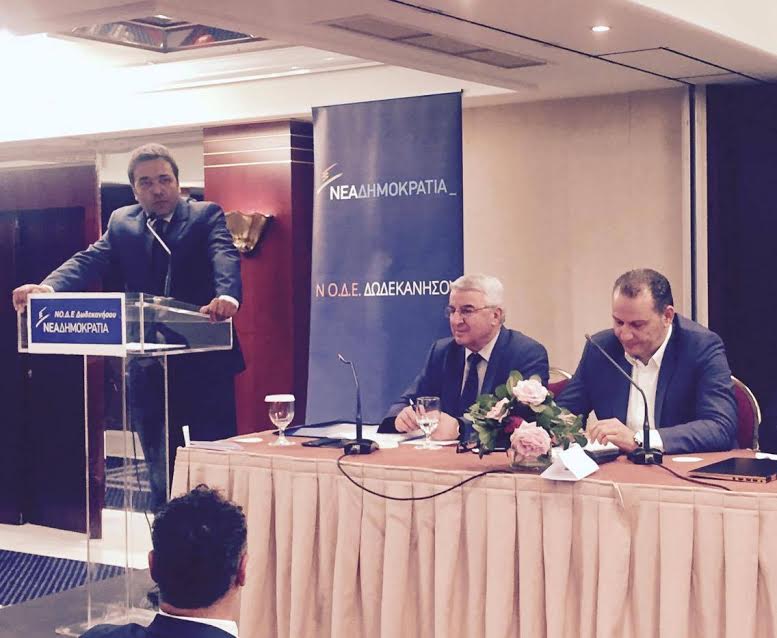 Με μεγάλη μου χαρά, νιώθοντας ιδιαίτερη τιμή, αλλά και ευθύνη, βρίσκομαι σήμερα ανάμεσά σας. Ευχαριστώ θερμά τη ΝΟΔΕ Δωδεκανήσου για την πρόσκλησή και χαίρομαι ιδιαιτέρως για την πρωτοβουλία της, σε συνεργασία με την Γραμματεία Οργανωτικού της ΝΔ, να συγκαλέσει Νομαρχιακή Συνέλευση.