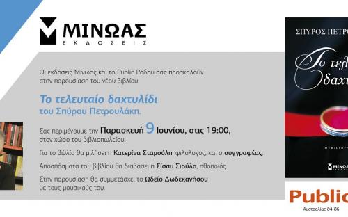 Κυκλοφορεί από τις εκδόσεις Μίνωας το νέο μυθιστόρημα του Σπύρου Πετρουλάκη Το τελευταίο δαχτυλίδι.