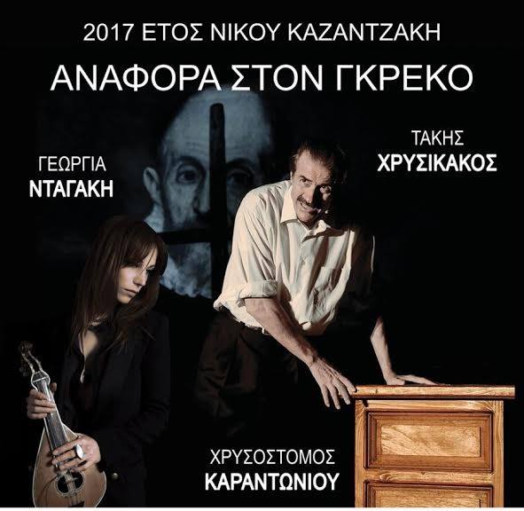 Παρασκευή 15 Σεπτεμβρίου Θέατρο Μεσαιωνικής Τάφρου Η «Αναφορά στον Γκρέκο», είναι το τελευταίο έργο τού μεγάλου Έλληνα συγγραφέα. Ένα είδος πνευματικής αυτοβιογραφίας ή, όπως τη χαρακτηρίζει ο ίδιος ο Καζαντζάκης, μια «αναφορά» με τη στρατιωτική έννοια του όρου, σχετικά με τους στόχους του και τις προσπάθειές του. Ξεκινά από τα παιδικά του χρόνια και σταματά στην ημέρα της «κρητικής ματιάς» και στη σύλληψη της Οδύσσειας. Δεν αφηγείται το σύνολο της ζωής του, αλλά παρουσιάζει τους σταθμούς της πνευματικής του πορείας, χωρίς να ακολουθεί την αυστηρή χρονολογική σειρά της πραγματικής του βιογραφίας. Μια παράσταση, που μέσα από τους ήρωες των έργων του Νίκου Καζαντζάκη και τις εξομολογήσεις του (στον παππού του, όπως αποκαλεί τον Ελ Γκρέκο) συναντάμε το μεγαλείο της Ελλάδας και το ανυπόταχτο πνεύμα του ίδιου του συγγραφέα. Στην παράσταση πρωταγωνιστούν ο Τάκης Χρυσικάκος, που ερμηνεύει τον Νίκο Καζαντζάκη και πρόσωπα του έργου του, καθώς και η Γεωργία Νταγάκη, που με την λύρα και το τραγούδι συνομιλεί με τους πρωταγωνιστές του, τον Καπετάν Μιχάλη, τον Αλέξη Ζορμπά, τον Δομήνικο Θεοτοκόπουλο και την ωραία Ελένη του Ομήρου! Συμμετέχει ο εξαίρετος μουσικός Χρυσόστομος Καραντωνίου παίζοντας κλασική κιθάρα. περισσότερες πληροφορίες σύντομα...