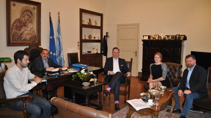 Ο Δήμαρχος Ρόδου Φώτης Χατζηδιάκος συναντήθηκε σήμερα 24 Απριλίου με τη συντονιστική ομάδα του Workshop που αποτελείται από τον Cezar Holdem, αρχιπιλότο της TUI, την Julia Jentsch, και το Ροδίτη Στέφανο Ράαμπε, ανώτερα στελέχη του αεροπορικού ομίλου της TUI, και το Γενικό Γραμματέα του Δήμου Ευγένιο Κορναρόπουλο, προκειμένου να συζητήσουν λεπτομέρειες σχετικά με το workshop.