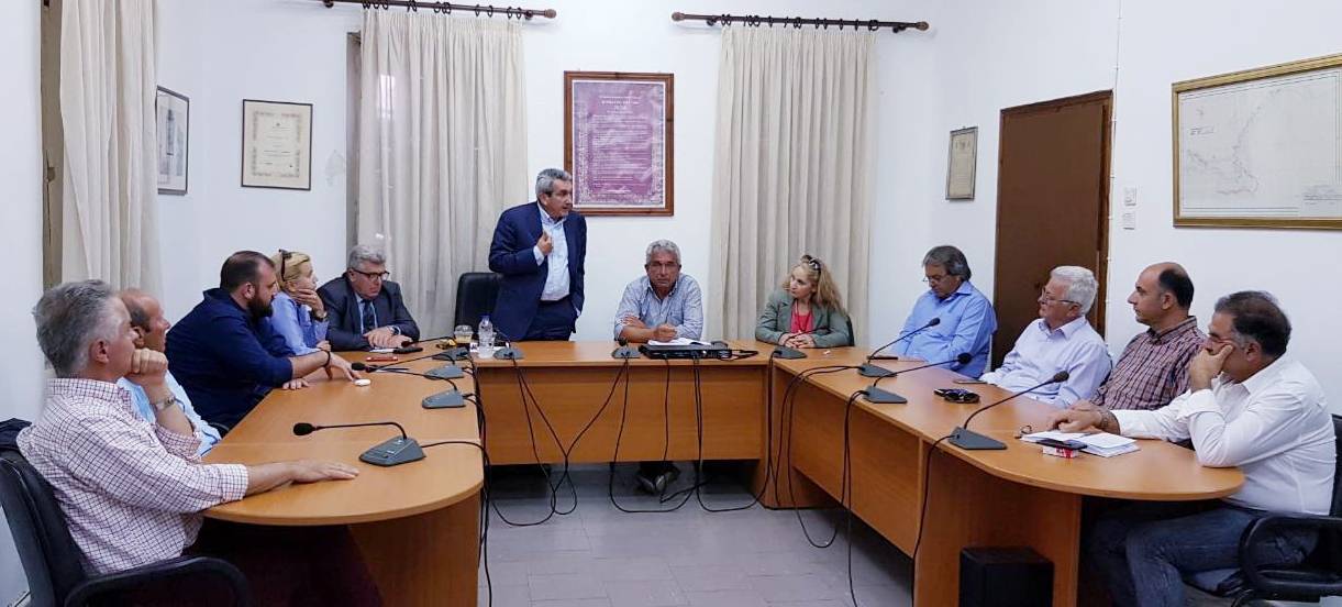 Οι επαφές ξεκίνησαν με το Δημοτικό Συμβούλιο του Δήμου Αστυπάλαιας, στο οποίο έγινε συζήτηση για το σύνολο των θεμάτων του νησιού. Σημειώνεται ότι ο Δήμος Αστυπάλαιας είναι ένας από τους πολλούς Δήμους της Περιφέρειας Νοτίου Αιγαίου που στενάζει από την έλλειψη προσωπικού και ειδικώς από την έλλειψη στελεχωμένων Τεχνικών Υπηρεσιών, κατάσταση που δεν του επιτρέπει να υλοποιήσει με τις δικές του δυνάμεις τα έργα που το νησί έχει ανάγκη.