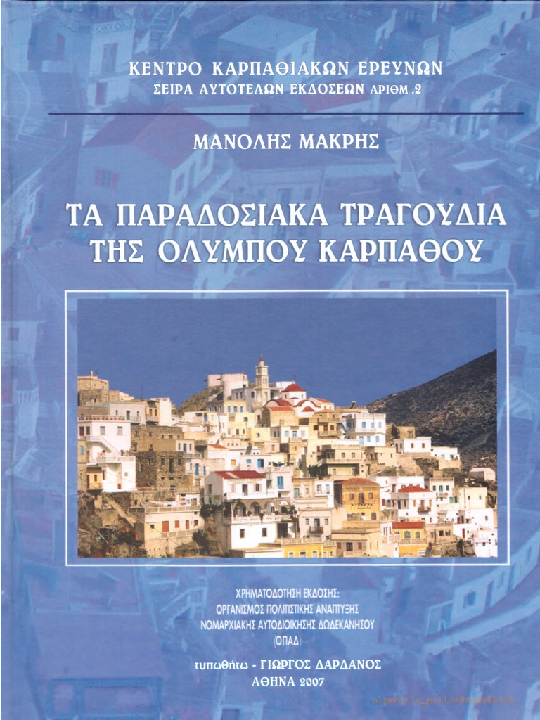 ΜΑΝΟΛΗΣ ΜΑΚΡΗΣ - «Τα παραδοσιακά τραγούδια της Ολύμπου Καρπάθου, Τόμος Β΄»