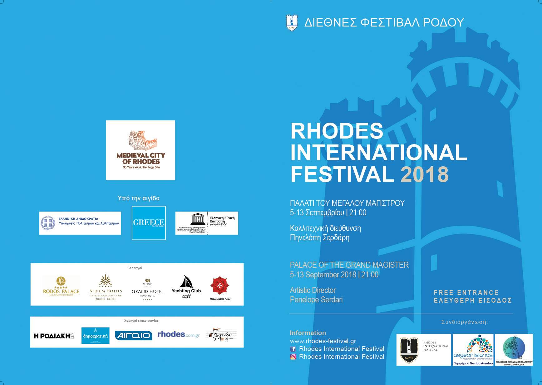 ΔΙΕΘΝΕΣ ΦΕΣΤΙΒΑΛ ΡΟΔΟΥ 2018 Μεσαιωνική Πόλη της Ρόδου – 30 Χρόνια Παγκόσμιας Πολιτιστικής Κληρονομιάς 5-13 Σεπτεμβρίου