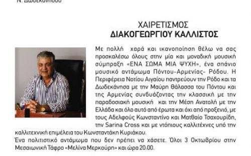 ΠΕΡΙΦΕΡΕΙΑ ΝΟΤΙΟΥ ΑΙΓΑΙΟΥ - ΕΝΑ ΣΩΜΑ - ΜΙΑ ΨΥΧΗ: ΡΟΔΟΣ, ΠΟΝΤΟΣ, ΑΡΜΕΝΙΑ