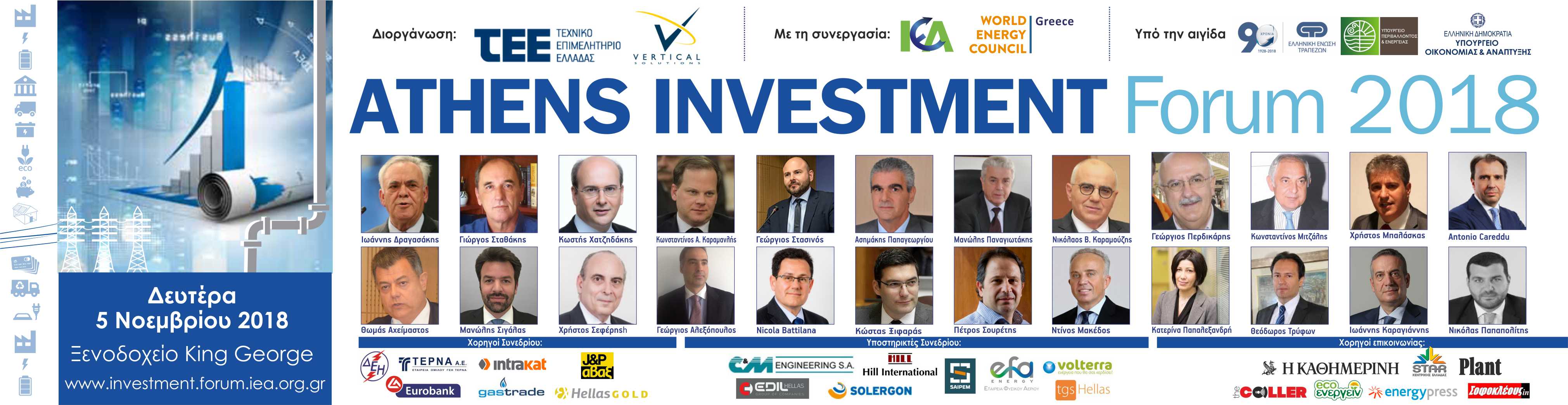 Υψηλού κύρους ομιλητές, διακεκριμένα μέλη της επίσημης Πολιτείας, και επιτυχημένοι εκπρόσωποι του επιχειρηματικού κόσμου της χώρας, τιμούν με την παρουσία τους το Athens Investment Forum 2018: Ο ρόλος των Ελληνικών Επιχειρήσεων στη Μελλοντική Ανάπτυξη, που πραγματοποιείται τη Δευτέρα 5 Νοεμβρίου 2018, στο Ξενοδοχείο King George στην Αθήνα.