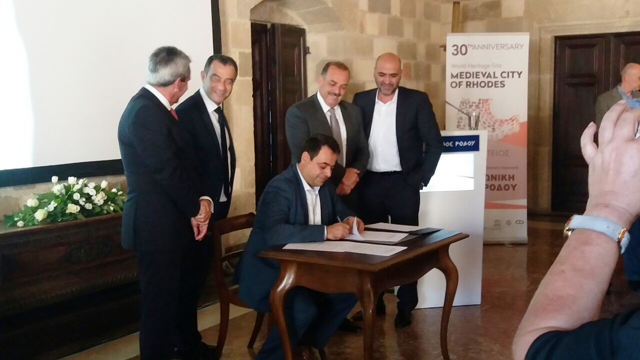 30 χρόνια μετά την ένταξη της Μεσαιωνικής Πόλης της Ρόδου, στον κατάλογο Μνημείων της UNESCO, το Σάββατο 3 Νοεμβρίου υπεγράφη στη Ρόδο, Μνημόνιο Συνεργασίας μεταξύ του Υπουργείου Πολιτισμού, του Υπουργείου Ναυτιλίας και Νησιωτικής Πολιτικής, της Περιφέρειας Νοτίου Αιγαίου και του Δήμου Ρόδου, ως προπομπός για την Σύνταξη Προγραμματικής Σύμβασης.