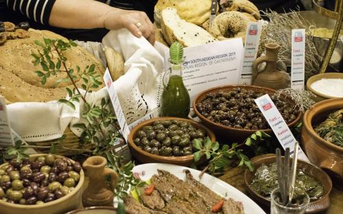 - Ο «Πολιτιστικός – Γαστρονομικός Σύλλογος Σκαλιωδάν» με σπιτικό Άρτο και ψωμί με σχινόκαρπο, ελιές κατσιστές, γίδα κοκκινιστή με μακαρόνια, παστό κολιό, χταπόδι στιφάδο, μαρινάτα ψάρια, ξερές μυζήθρες αλλά και γλυκά πουγγιά