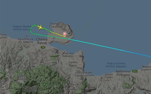 Κρίθηκε αναγκαίο όπως φαίνεται και στο στίγμα της πτήσης, το αεροσκάφος να προσγειωθεί στο κοντινότερο αεροδρόμιο, που ήταν αυτό των Χανίων έως ότου αποκατασταθεί το πρόβλημα.