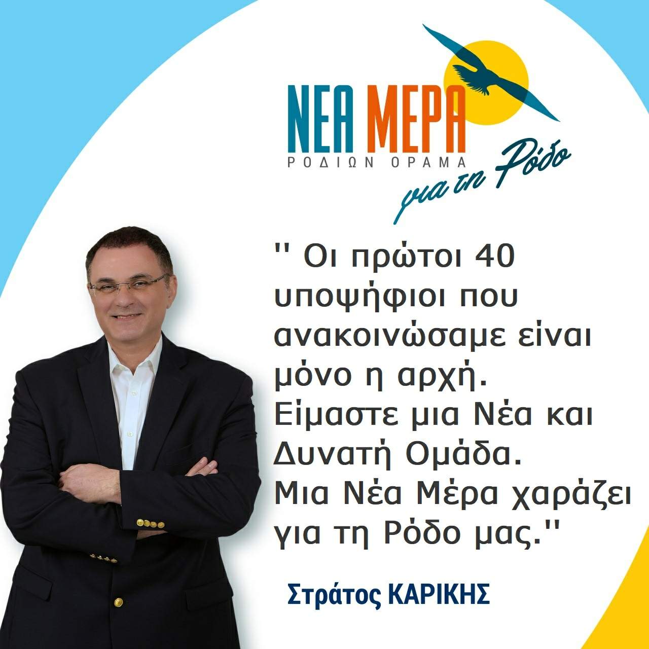 ΣΤΡΑΤΟΣ ΚΑΡΙΚΗΣ : ‘Οι 40 υποψήφιοι είναι μόνo η αρχή. Είμαστε μια Νέα και Δυνατή Ομάδα. Μια ΝΕΑ ΜΕΡΑ χαράζει για τη Ρόδο.’’