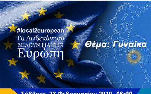 «#local2european | Τα Δωδεκάνησα μιλούν για την Ευρώπη» με θέμα τη Γυναίκα, το Σάββατο, 23 Φεβρουαρίου 2019, στις 18:00.