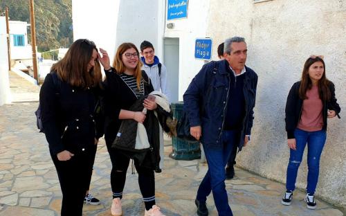 Ακολούθησε επίσκεψη στο σχολείο του νησιού, για το οποίο, μέσω του ΕΣΠΑ της Περιφέρειας έχει γίνει προμήθεια ψηφιακού εξοπλισμού, ενώ έχουν γίνει και εργασίες συντήρησης, μέσω του ειδικού προγράμματος της Περιφέρειας για τις συντηρήσεις των σχολικών μονάδων στα νησιά. Στην διάρκεια της επίσκεψης κατεγράφησαν και οι επιπλέον εργασίες συντήρησης που πρέπει να γίνουν στο κτίριο, με τον Περιφερειάρχη να δεσμεύεται για την αύξηση της χρηματοδότησης του Δήμου, για την εκτέλεσή τους.