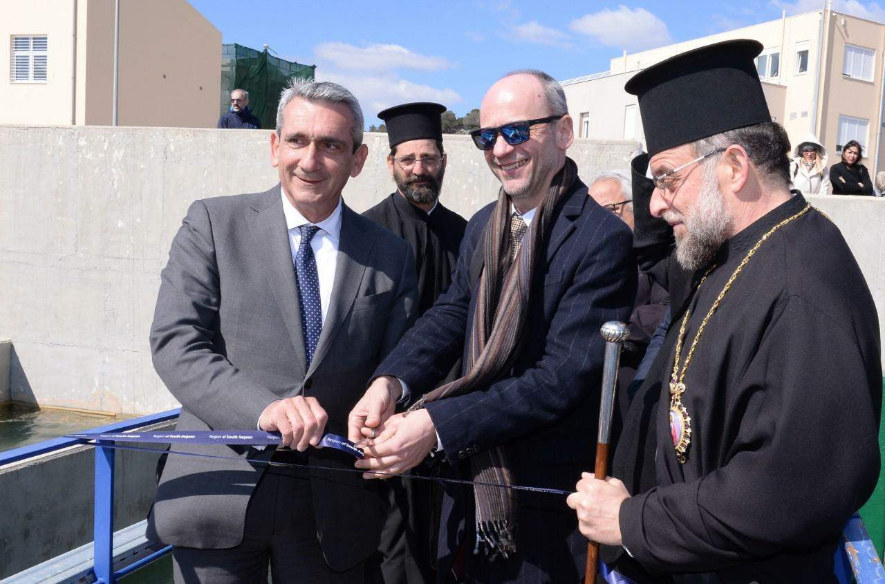 Των εγκαινίων προηγήθηκαν οι ομιλίες του Νίκου Λυμπερόπουλου, Προέδρου της Επιτροπής Παρακολούθησης της λειτουργίας του έργου, του Λάζαρου Λαζαρίδη, – μελετητή του έργου, του Περιφερειάρχη Νοτίου Αιγαίου, Γιώργου Χατζημάρκου και του Αναπληρωτή Γενικού Διευθυντή Περιφερειακής Πολιτικής της Ευρωπαϊκής Επιτροπής, Normunds Popens, ο οποίος συνεχάρη τον Περιφερειάρχη για την αποφασιστικότητά του να ολοκληρώσει το έργο, 18 χρόνια μετά την έναρξή του.