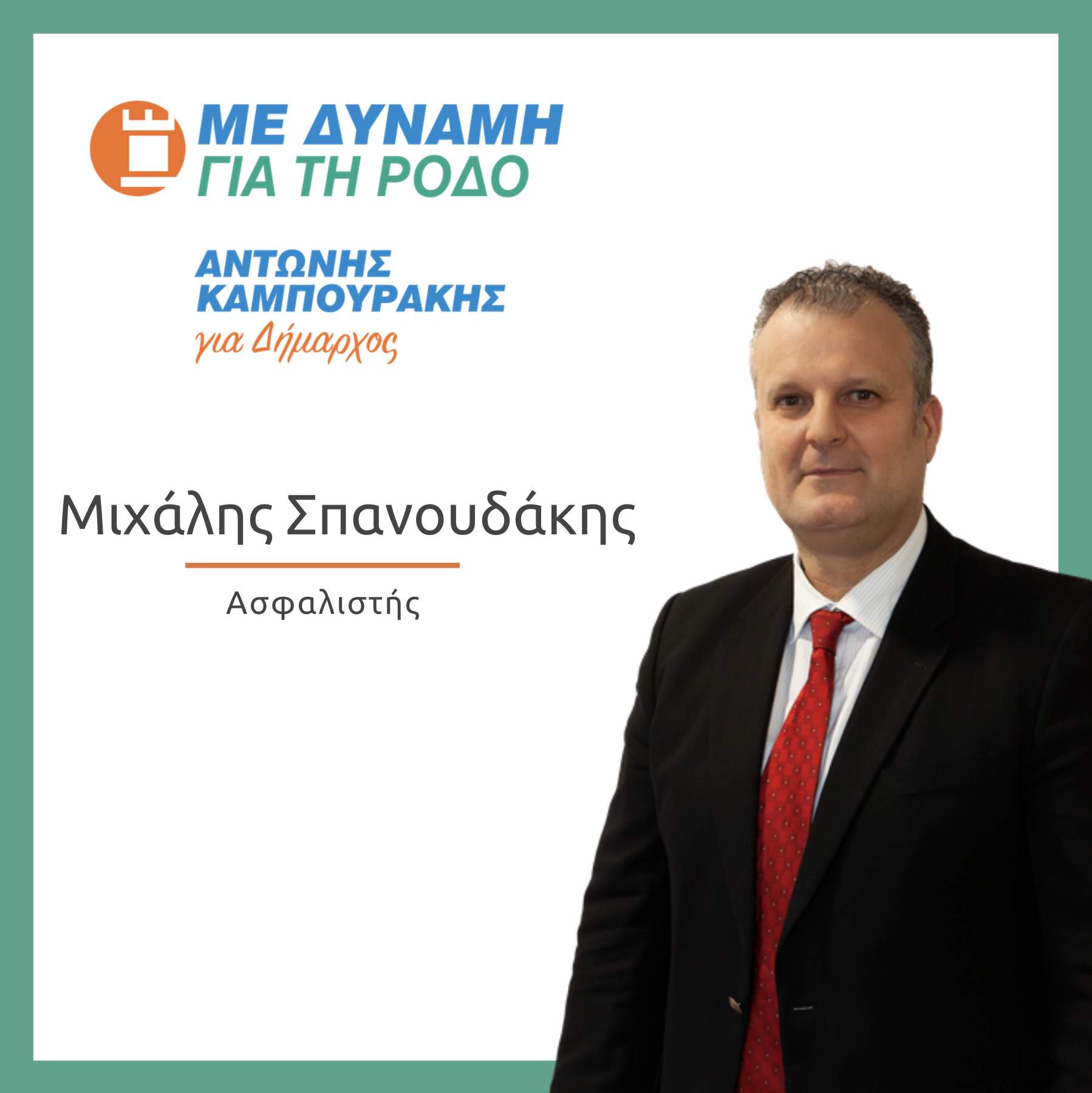 Ο Μιχάλης Τσαμπίκος Σπανουδάκης, στην δήλωσή του, με την οποία ανακοινώνει την απόφασή του να συμπορευτεί με τον Αντώνη Καμπουράκη, αναφέρει τα εξής: «Το κίνητρο μου είναι η αγάπη και το ενδιαφέρον για τον συνάνθρωπο μου Ροδίτη. Στόχος είναι να μπορέσουμε να καλυτερεύσουμε το μέρος που μεγαλώνουμε εμείς και τα παιδία μας. Συμμετέχω στο ψηφοδέλτιο “Με Δύναμη Για Τη Ρόδο” με τον Αντώνη Καμπουράκη γιατί μας ενώνει η κοινή αγάπη για τον Τόπο μας και έχει την ικανότητα να ηγηθεί της αναπτυξιακής μας πορείας».