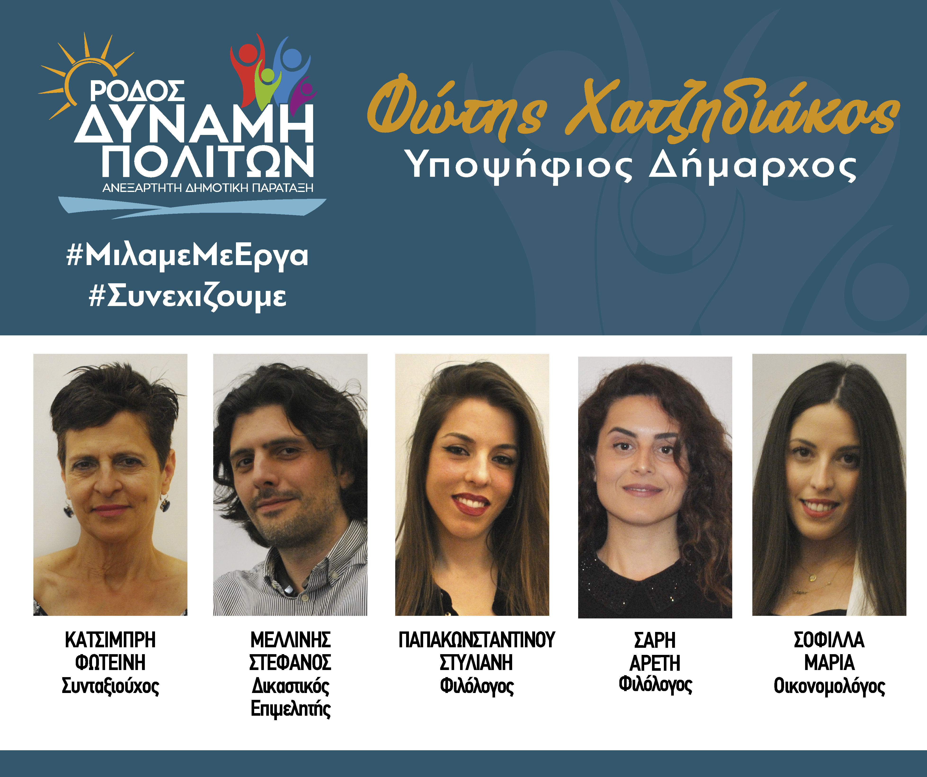 Η παράταξη «ΡΟΔΟΣ ΔΥΝΑΜΗ ΠΟΛΙΤΩΝ» ανακοινώνει 5 νέους υποψήφιους του συνδυασμού.