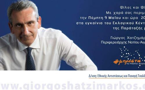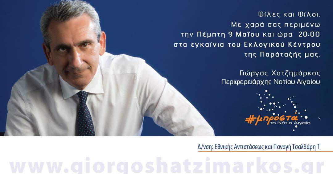 ΓΙΩΡΓΟΣ ΧΑΤΖΗΜΑΡΚΟΣ - ΠΡΟΣΚΛΗΣΗ ΣΤΑ ΕΓΚΑΙΝΙΑ ΤΟΥ ΕΚΛΟΓΙΚΟΥ ΚΕΝΤΡΟΥ