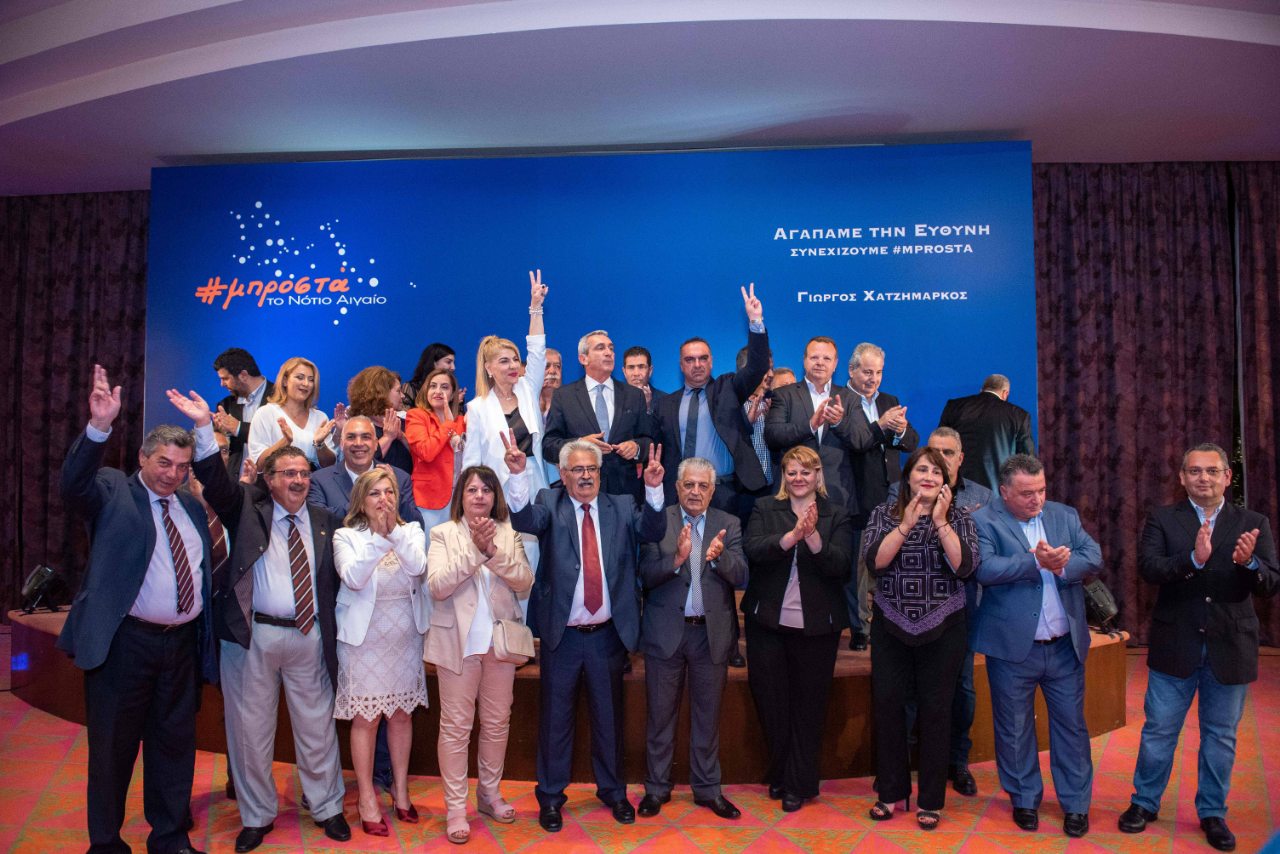 Κλείνοντας την ομιλία του και λίγο πριν παρουσιάσει τους 30 υποψηφίους περιφερειακούς συμβούλους της ΠΕ Ρόδου, ο Γιώργος Χατζημάρκος ζήτησε από όλους, με την επιλογή τους στις κάλπες, να διασφαλίζουν τη συνέχιση της πορεία του Νοτίου Αιγαίου μπροστά.