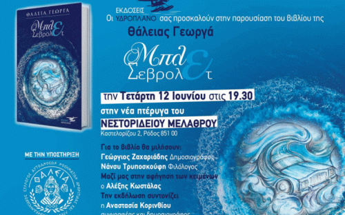 Οι ΕΚΔΟΣΕΙΣ ΥΔΡΟΠΛΑΝΟ, σας προσκαλούν στην παρουσίαση του βιβλίου της Θάλειας Γεωργά «Μπλε Σεβρολέτ»