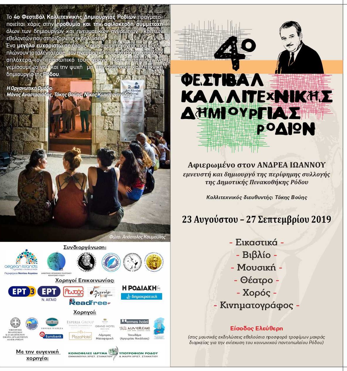 Το 4ο Φεστιβάλ Καλλιτεχνικής Δημιουργίας Ροδίων ξεκινά! 23 Αυγούστου - 27 Σεπτεμβρίου 2019