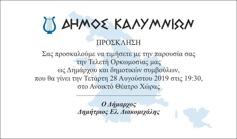 ΔΗΜΟΣ ΚΑΛΥΜΝΙΩΝ - ΠΡΟΣΚΛΗΣΗ ΣΤΗΝ ΟΡΚΟΜΩΣΙΑ ΤΟΥ ΔΗΜΟΤΙΚΟΥ ΣΥΜΒΟΥΛΙΟΥ