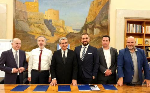 Ο Περιφερειάρχης και οι εκπρόσωποι τριών εταιρειών που συνθέτουν το ανάδοχο σχήμα με την επωνυμία «Υδατοδρόμια Νοτίου Αιγαίου», το οποίο προέκυψε μετά από διεθνή διαγωνισμό, υπέγραψαν σήμερα τη σύμβαση ανάδειξης αναδόχου για την αδειοδότηση 20 συνολικά υδατοδρομίων, σε 19 νησιά της Περιφέρειας Νοτίου Αιγαίου.