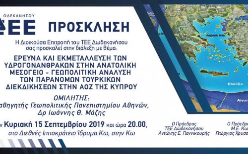 Η Διοικούσα Επιτροπή του ΤΕΕ Δωδεκανήσου σας προσκαλεί στην ομιλία με θέμα: