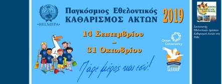 Η HELMEPA είναι για ακόμα μία χρονιά ο επίσημος συντονιστής στην Ελλάδα του Παγκόσμιου Εθελοντικού Καθαρισμού Ακτών 2019 του Ocean Conservancy.
