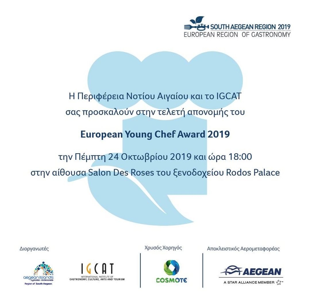 Στη Ρόδο, 23 - 24 Οκτωβρίου 2019, ο ευρωπαϊκός γαστρονομικός διαγωνισμός European Young Chef Award 2019