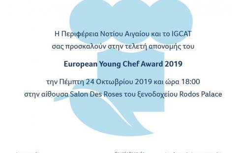 Η Ρόδος, στις 23 και 24 Οκτωβρίου 2019 θα βρεθεί στο επίκεντρο του ευρωπαϊκού ενδιαφέροντος της Γαστρονομίας, στο πλαίσιο της πολύ σημαντικής διάκρισης της Περιφέρειας Νοτίου Αιγαίου, ως Γαστρονομικής Περιφέρειας της Ευρώπης για το 2019, με τη διεξαγωγή του Γαστρονομικού Διαγωνισμού «European Young Chef 2019».