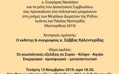 ΝΕΣΤΟΡΙΔΕΙΑ 2019 - ΕΠΙΚΑΙΡΗ ΕΝΔΙΑΦΕΡΟΥΣΑ ΔΙΑΛΕΞΗ
