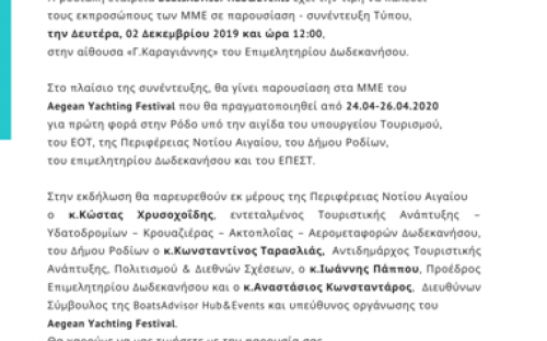Παρουσίαση του 1ου Aegean Yachting Festival στη Ρόδο