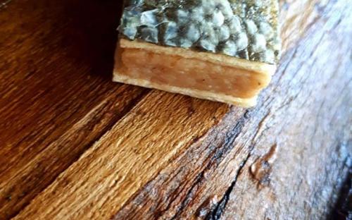 Με δύο μόνο, χρυσαφένια υλικά και ένα της βασικής, ευλογημένης διατροφής. Φούσκα της θάλασσας, αγνό λάδι και ψωμί, καθημερινό αγαθό στη διατροφή των Καλύμνιων. Φούσκα παιχνιδιάρικη, όλο κίνηση και νάζι. Που όταν της παραβιάσεις τη χαλαρή αίσθηση, ταμπουρώνεται στο πολύχρωμο κέλυφος, αποκτά την αντίσταση πολεμικού τείχους, και την αισθάνεσαι σαν απειλή. Σαν «δυναμίτης» στα χέρια σου… Εξίσου εκρηκτική και η γεύση στον ουρανίσκο.