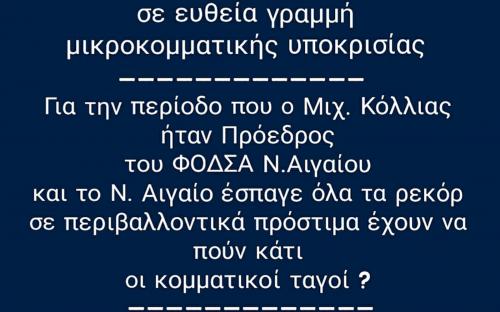 Όταν επί Προεδρίας Μιχ. Κόλλια το Ν. Αιγαίο έσπαγε όλα τα ρεκόρ σε πρόστιμα για το περιβάλλον πού ήταν αυτοί οι ευαίσθητοι πολίτες;