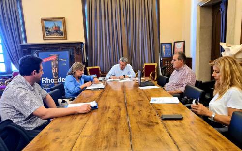 Συνάντηση εργασίας συγκάλεσε, σήμερα, ο Περιφερειάρχης Νοτίου Αιγαίου Γιώργος Χατζημάρκος για την οργάνωση και τον προγραμματισμό των σεμιναρίων δωρεάν εκπαίδευσης πάνω στα Υγειονομικά Πρωτόκολλα, που ανακοίνωσε χθες η Κυβέρνηση για τον τουριστικό κλάδο, τα οποία θα καλύψουν τους ενδιαφερόμενους από όλα τα νησιά της Περιφέρειας Νοτίου Αιγαίου. Στην σύσκεψη με τον Περιφερειάρχη συμμετείχαν ο Αντιπεριφερειάρχης Δωδεκανήσου Χρήστος Ευστρατίου, η Αντιπεριφερειάρχης Υγείας και Πρόεδρος του Κ.Ε.Κ. ΓΕΩΡΓΙΟΣ ΓΕΝΝΗΜΑΤΑΣ Χαρούλα Γιασιράνη, ο Εντεταλμένος Τουριστικής Ανάπτυξης Δωδεκανήσου, Κωνσταντίνος Χρυσοχοΐδης, η Διευθύνουσα Σύμβουλος του Κ.Ε.Κ. Βάνα Αγγελοπούλου Μανωλάκη και ο Διευθυντής Κώστας Χατζηδάκης.