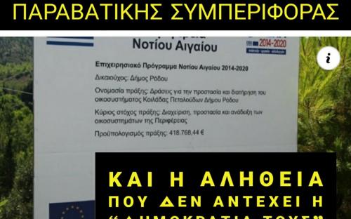 Αν η “έγκριτος” εφημερίδα “Ροδιακή” ήθελε να κάνει ρεπορτάζ, θα έπρεπε να είχε αναζητήσει ποιος έδωσε εντολή να ξηλωθεί η πινακίδα της ΕΕ από την είσοδο της Κοιλάδας των Πεταλούδων ( που αναπλάθεται από το Επιχειρησιακό Πρόγραμμα Νότιο Αιγαίο 2014 – 2020), τις ημέρες της φιέστας για τα εγκαίνια της ... εισόδου, για να μην δουν οι επισκέπτες ποιος είναι ο φορέας χρηματοδότησης του έργου της ανάπλασης της Κοιλάδας. Θα έπρεπε να είχε αναζητήσει και αποκαλύψει ποιοι είναι εκείνοι που λειτουργούν σαν τσιφλικάδες και δεν σέβονται ούτε κανόνες, ούτε νομικές, ούτε ηθικές δεσμεύσεις.