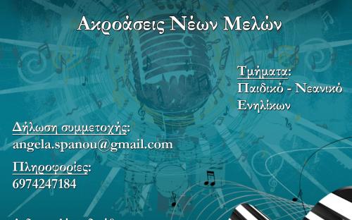 Αίτηση ακρόασης: https://docs.google.com/forms/d/e/1FAIpQLSc0nkh6c0XY_QX94TpcoHp66fI_2C-mouhi8avaJtfYvG8epw/viewform