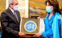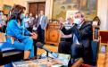 Με την ολοκλήρωση της συνάντησης, ο Περιφερειάρχης χάρισε στην κα Αγγελοπούλου ένα πλακίδιο ροδίτικης τεχνοτροπίας με το έμβλημα του επετειακού εορτασμού “Ελλάδα 2021”.