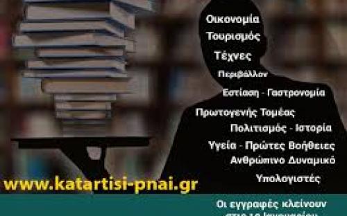 Οι εγγραφές θα γίνονται ηλεκτρονικά μέσω της ιστοσελίδας του ΚΕΚ στη διεύθυνση: www.katartisi-pnai.gr