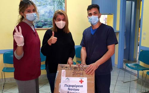 Σειρά στο πρόγραμμα των αποστολών είχε η Σύμη, όπου παραδόθηκαν αρμοδίως 600 τεστ ταχείας ανίχνευσης αντιγόνου COVID-19 (rapid tests).